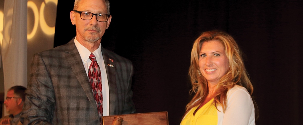 Dave Edmondson, J&M Tank Lines and incoming Tank Truck Safety & Security Council chairman, presented a plaque to Candi Coate, K-Limited Carrier Ltd, in appreciation for her service as Tank Truck Safety & Security Council chairwoman for the past year.