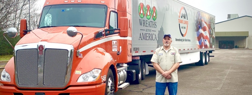 In 2018, J & M Tank Lines was honored to participate in Wreaths Across America, where a J & M 2018 Kenworth T680 sleeper cab and a new dry van with special wrapping, were dedicated to the cause. Vice President of Maintenance, Billy Lollar, volunteered to drive and deliver the wreaths assigned to J & […]